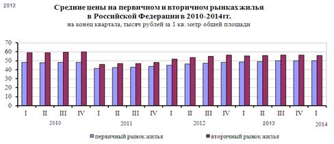 Если рассматривать результаты функционирования рынка жилья в России за последние несколько лет, можно наблюдать постепенную динамику цен, как на первичном, так и на вторичном рынках жилья (рисунок 3.1).