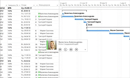 Возможность начинать беседы в режиме реального времени прямо из своего проекта благодаря новому уровню интеграции Project с Skype для бизнеса и Skype для бизнеса online.