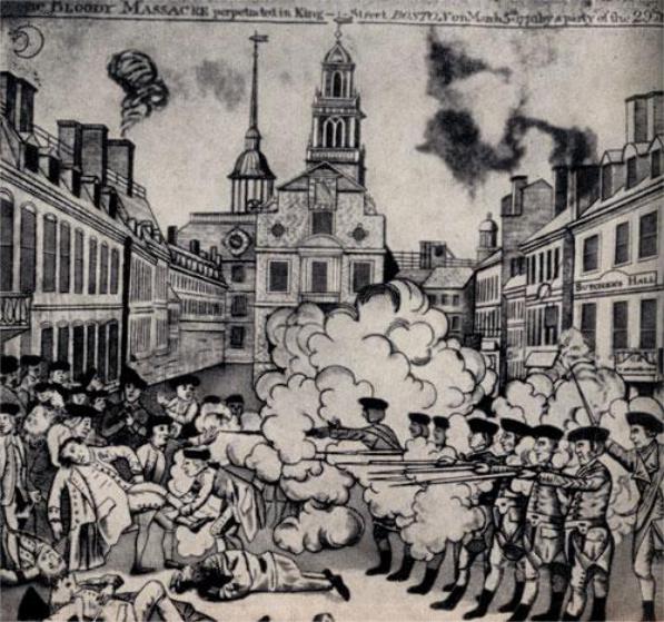 Расстрел англичанами демонстрации в Бостоне 5 марта 1770 г. Гравюра П. Ривера