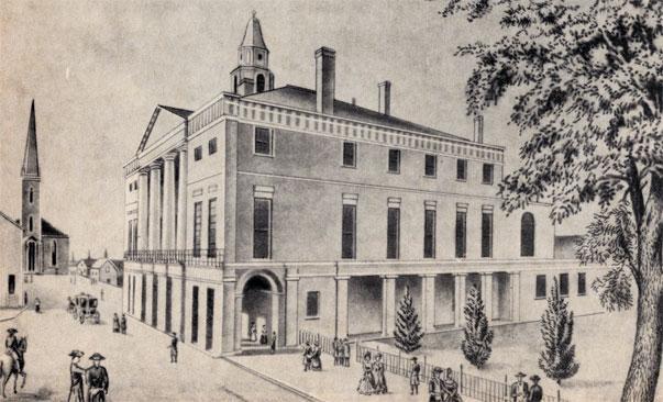 Уолл-стрит - деловой центр Нью-Йорка Гравюра XVIII в.