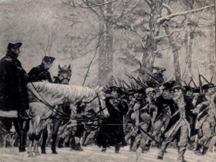 Смотр Дж. Вашингтоном войск в период голодной зимы в Валлей-Форж 1777 - 1778 г. Худ. У. Трего
