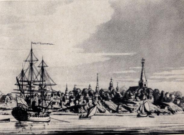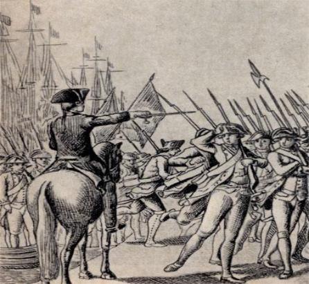 Высадка французских войск, прибывших в Америку Гравюра XVIII в.