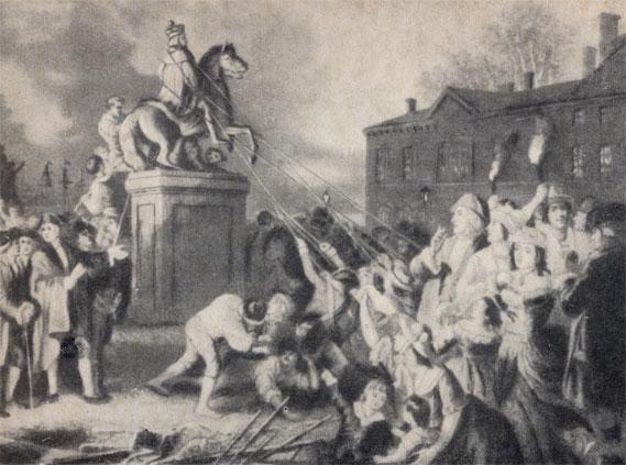 Низвержение статуи британского короля Георга III в Нью-Йорке 10 июля