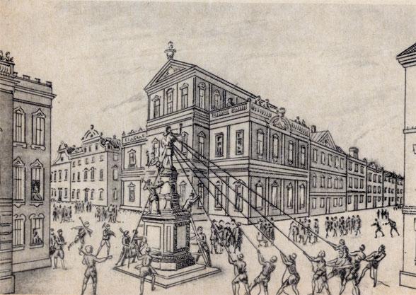 Низвержение статуи Георга III. Гравюра, опубликованная в Европе