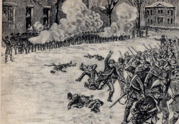 Расстрел повстанцев Д. Шейса у арсенала в Спригфилде в январе 1787 г. Гравюра XVIII в.