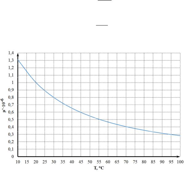 Рис. 2.5 – Зависимость кинематической вязкости от температуры
