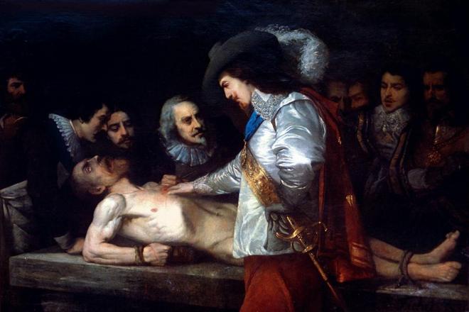 Рис. 3. Уильям Гарвей препарирует тело Томаса Парра