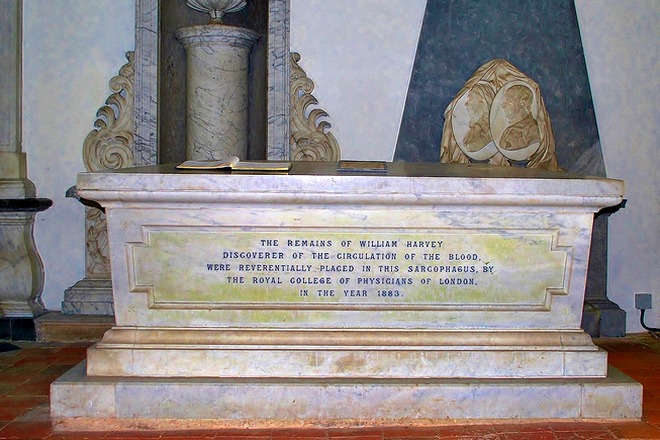 Главным вкладом Уильяма Гарвея в медицину стал его труд «Анатомическое исследование о движении сердца и крови у животных», который был опубликован в 1628 году.