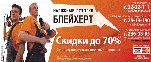 Эта реклама расположена в еженедельнике «Шанс».На ней мы видим двух мужчин: надеты они в специальную рабочую одежду,в их руках иструменты ,их раскованная и уверенная поза говорит за них: Они мастера своего дела.Именно они устанавливают потолки.