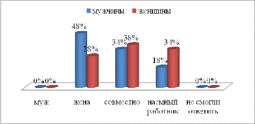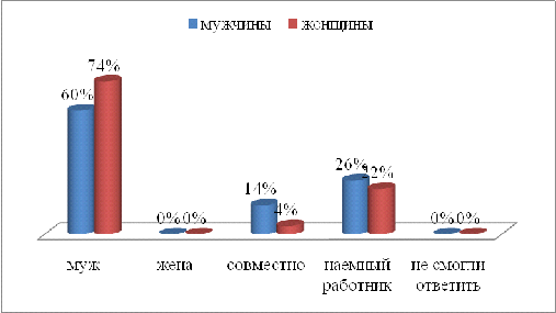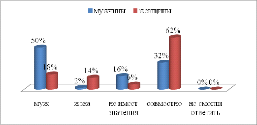 преимущественно распоряжался муж. Также больше мужчин (16%), чем женщин (6%),