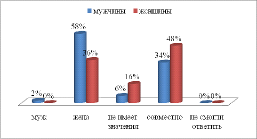 распределились неоднозначно. Так, мужчины (48%) в большей степени, чем женщины