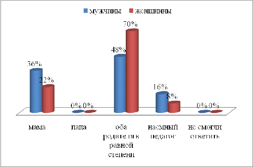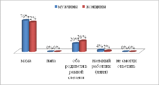мужчин и женщин по данным позициям составил: мама - 14%, папа - 0%, оба