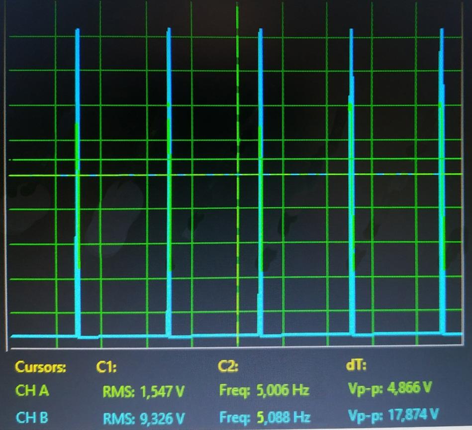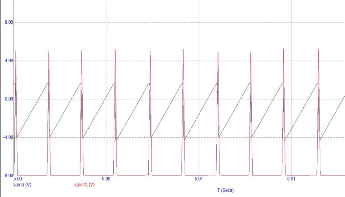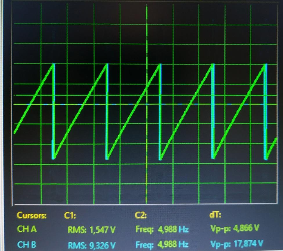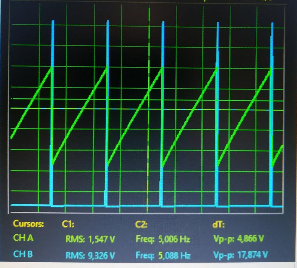 Рисунок 3.2 – Генерация пилообразного сигнала частотой 5 кГц при R1=1,5 кОм,R4=55 кОм
