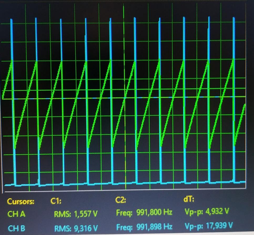 Рисунок 4.2 – Генерация пилообразного сигнала частотой 1 кГц при R1=5 кОм,R4=87,5 кОм