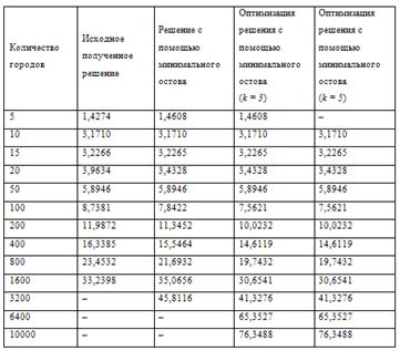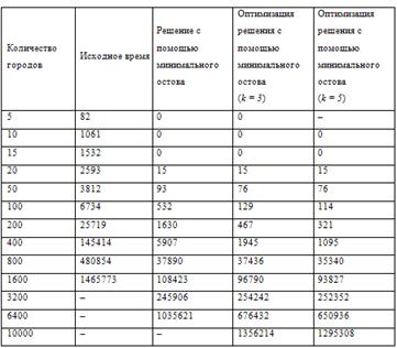 минимального остова даже с оптимизацией. Однако при решении задачи коммивояжера