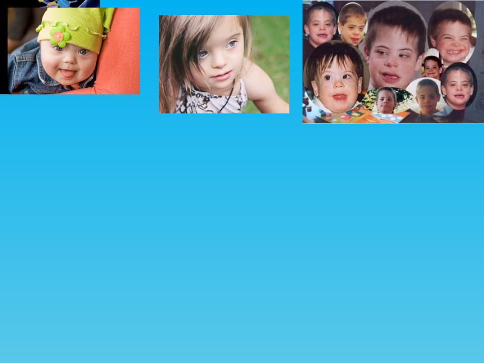 •Хромосомные болезни могут быть вызваны и нерасхождением аутосом. Впервые связь между изменением хромосомного набора и резкими отклонениями от нормального развития была обнаружена при изучении синдрома Дауна (врожденной идиотии). Люди, страдающие этим заболеванием, имеют характерный разрез глаз, низкий рост, короткие и короткопалые руки и ноги, аномалии многих внутренних органов, специфическое выражение лица, для них характерна умственная отсталость. Изучение кариотипа таких больных показало наличие дополнительной, т.е. третьей, хромосомы в 21-й паре (так называемая трисомия). Причина трисомии связана с нерасхождением хромосом в ходе мейоза у женщин.