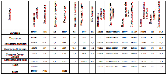 На протяжении периода 1979-2002 гг. на территории Северо-Кавказского федерального округа сохранялся положительный естественный прирост, рождаемость превышала смертность. В 2002 году по Северо-Кавказскому федеральному округу наблюдался, как и по стране в целом отрицательный естественный прирост (-1,7‰). В 2010 г. он остается отрицательным. Однако, стоит отметить, что, не смотря на отрицательные показатели естественного прироста населения, можно сказать, что по данным переписи населения 2010 года наблюдается явный положительный сдвиг по всем демографическим показателям. Отрицательный естественный прирост наблюдается в Ставропольском крае, республиках Северная Осетия-Алания и Карачаево- Черкесия. Положительный показатель и динамика наблюдается в остальных субъектах Северо-Кавказского ФО.
