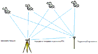 расстояниях до 50 км от базовой станции. Схема работы в режиме RTK приведена на