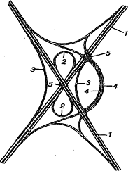 - пересекающие автомагистрали; 2 - левоповоротные съезды;