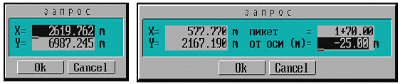 При необходимости можно ввести требуемые координаты строящейся точки.