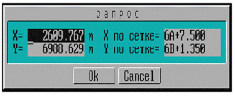 Нажать кнопку [Ok], используя клавишу [Tab], после чего курсор установится на заданные координаты.