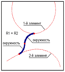 сопряжение состоит из связки элементов -"окружность + прямая +