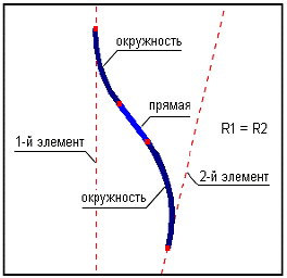 элементов обратными круговыми кривыми одинакового радиуса с прямой вставкой или