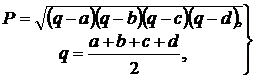 где a, b, c, d - стороны четырехугольника; q - полупериметр четырехугольника.