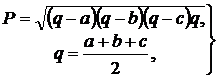 где a, b, c - длины сторон треугольника; q - полупериметр треугольника.