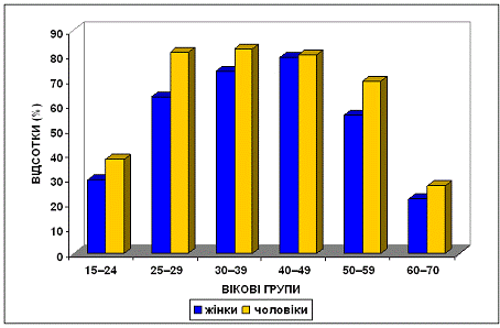 40-49 років рівень зайнятості населення за віковими групами в залежності від