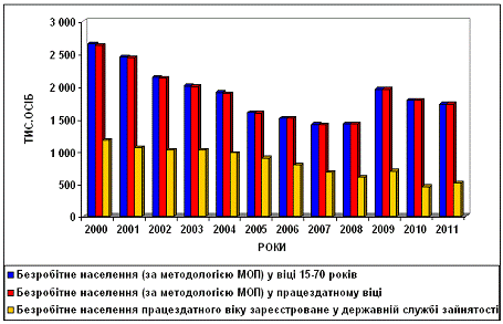 безробітного населення (за методологією МОП) у 2000-2011 рр.(побудовано автором