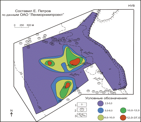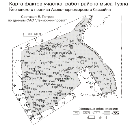 Результаты гранулометрического анализа донных отложений были взяты из фонда данных ОАО “Ленморниипроект”.