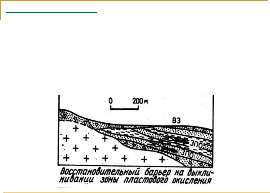 Восстановительный – проявляется на участках миграции при резком увеличении восстановленности среды. Обусловлен понижением Eh. В зависимости от состава восстановителей барьер делится на два подкласса: