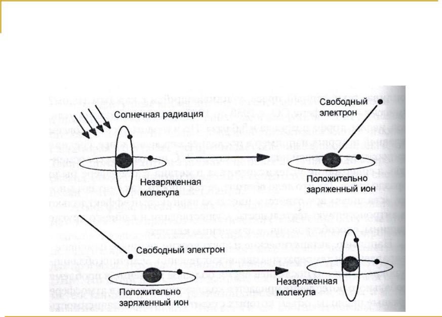 Ионизация газов осуществляется под действием электромагнитного (особенно рентгеновского) и корпускулярного излучения Солнца.