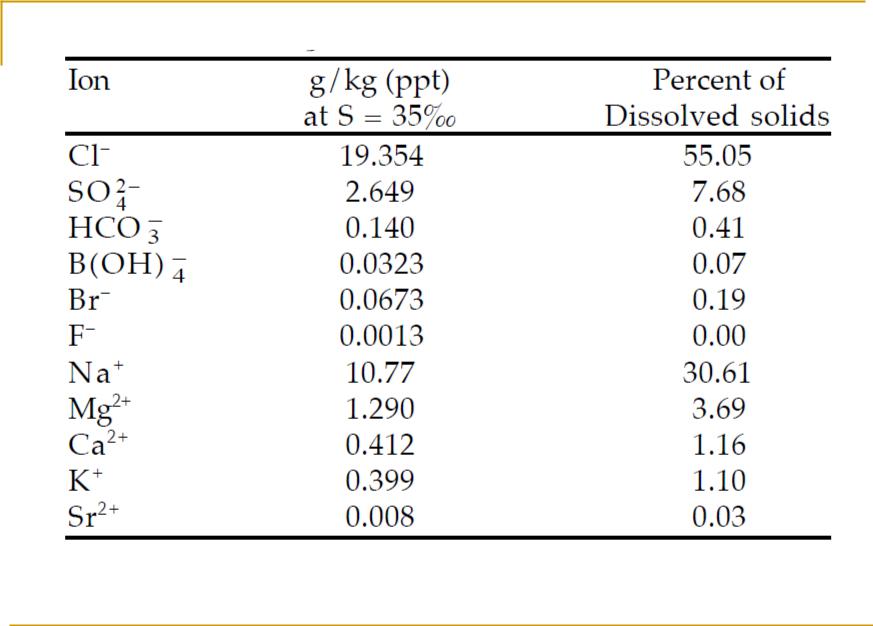 Химический состав океанических, морских вод характеризуется постоянным соотношением растворообразующих элементов: