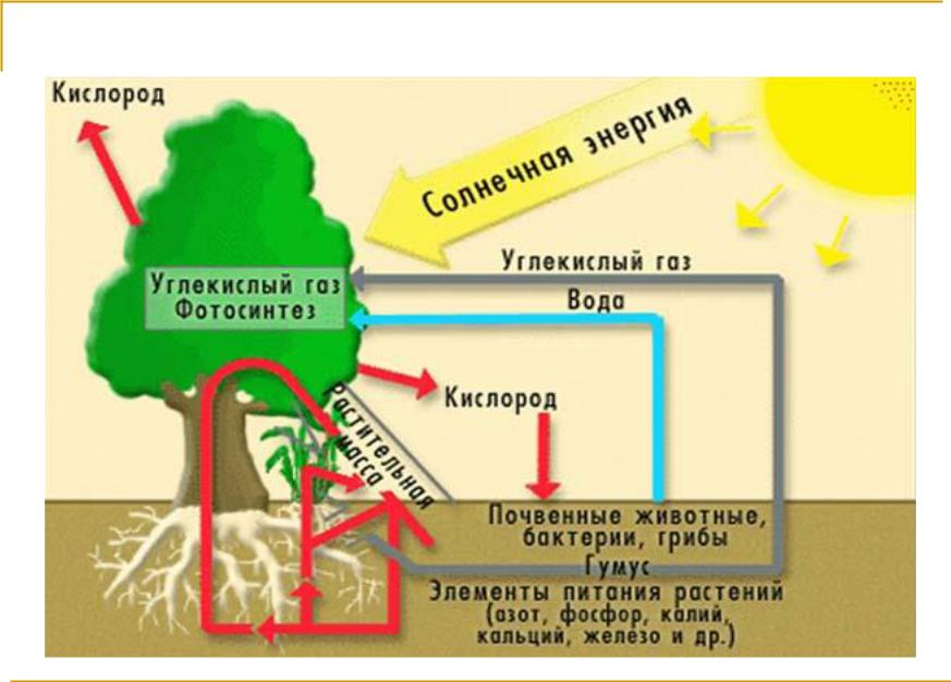 5.Средообразующая – поступление в среду миграции газов, генерируемых растениями, и продуктов минерализации органического вещества определяет щелочно-кислотные и окислительновосстановительные условия.