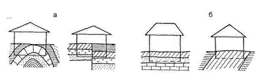 Неблагоприятные (а) и благоприятные (б) условия строительства.