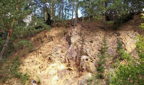 желто-красных альбитофиров (эффузивная кислая порода, содержащая пирит). Они