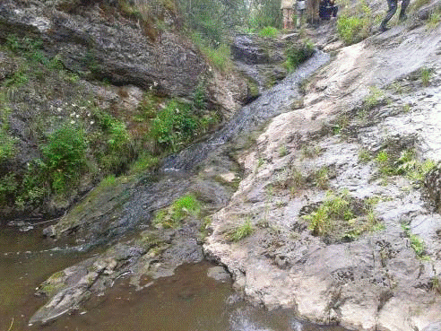 3 в т.н. 3.9 на р. Шата. Угол наклона составлял 30-40°, по всей длине водопада