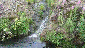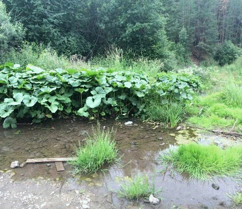 Также в течение маршрута №3 в т.н.3.2 на правом берегу р.Шата напротив обнажения альбитофиров видим заболачивание р.Шата. Также видим характерную растительность (калужница).