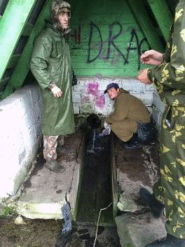В маршруте №2,на пенеплене, в районе пещеры от т.н. 2.1 вверх по течению р.Пышма, наблюдаются частые воронки-выемки для добычи известняка, диаметр которых в среднем 10-15 метров, а глубина до 3 метров.
