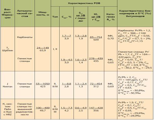 Все осадочные комплексы, выделенные в разрезе территории, имеют в своем составе как нефтематеринские породы, так и породы-коллекторы.
