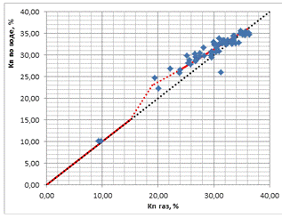 значение Кп,гр=22,7% (рис.2.7). Граничное значение коэффициента проницаемости