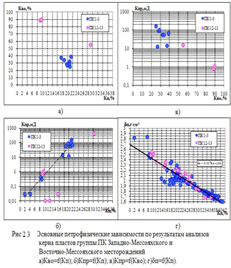 Основные петрофизические зависимости и константы для продуктивного пласта ПК1-3 Западно-Мессояхского и Восточно-Мессояхского месторождений по данным подсчета запасов.