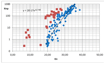 пористости поэтому экстраполяции линий регрессии зависимости, построены по
