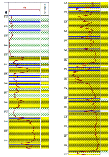 ) значительная общая толщина изучаемых продуктивных отложений и наличие в разрезе каждой скважины, вскрывшей эти отложения, достаточного числа пластов с разными пористостью и глинистостью;