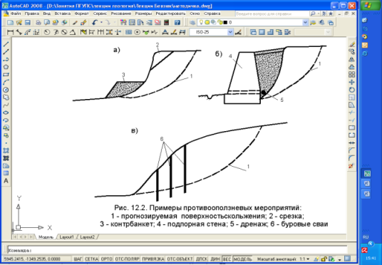 - стабилизация осыпи уборкой части материала вверху и подсыпкой снизу в виде контрбанкета;