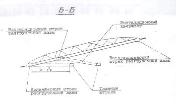 Конвейерный и вентиляционный штреки, проводимые вслед за разгрузочной лавой,
