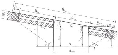 Для определения ширины зоны разгрузки массива (рис. 4.5) изображается в масштабе и определяются Взв и Взп.