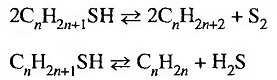 меркаптанов с образованием углеводородов и серы или углеводородов и H2S:
